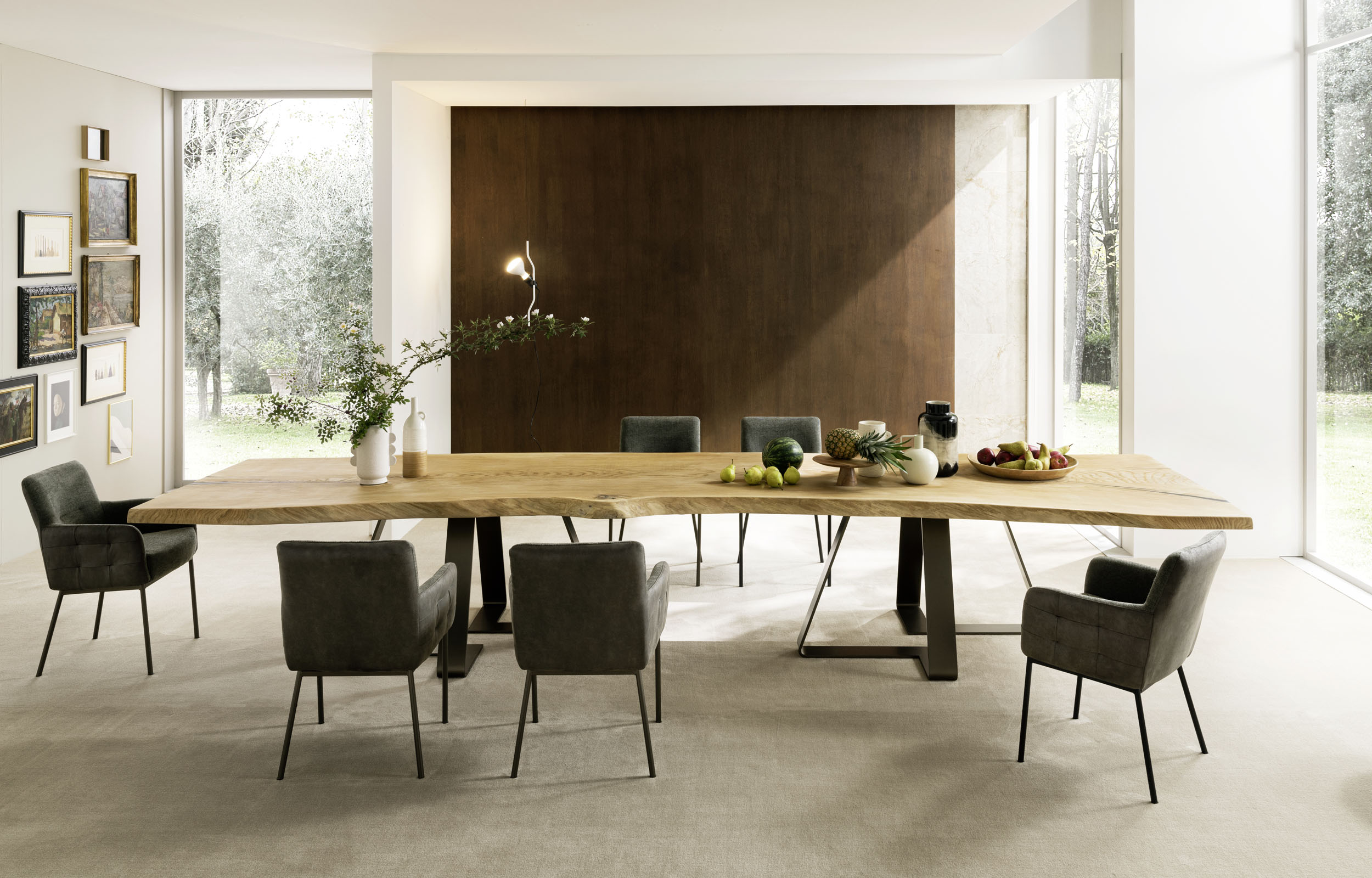 Altacorte Stühle verbinden ergonomischen Komfort mit einer materialbetonten Gestaltung. Holz, Leder und textile Bezüge werden harmonisch kombiniert. Die Konstruktion ist auf Stabilität und den täglichen Gebrauch ausgelegt. Dadurch integrieren sich die Sitzmöbel selbstverständlich in den Raum.