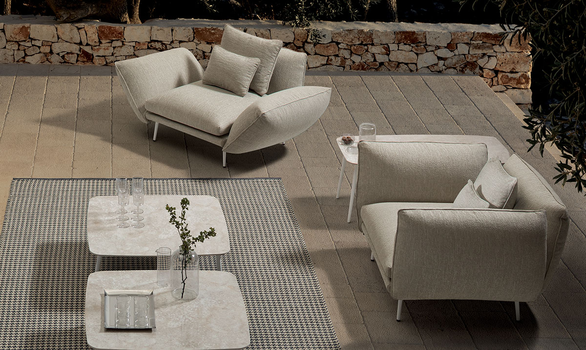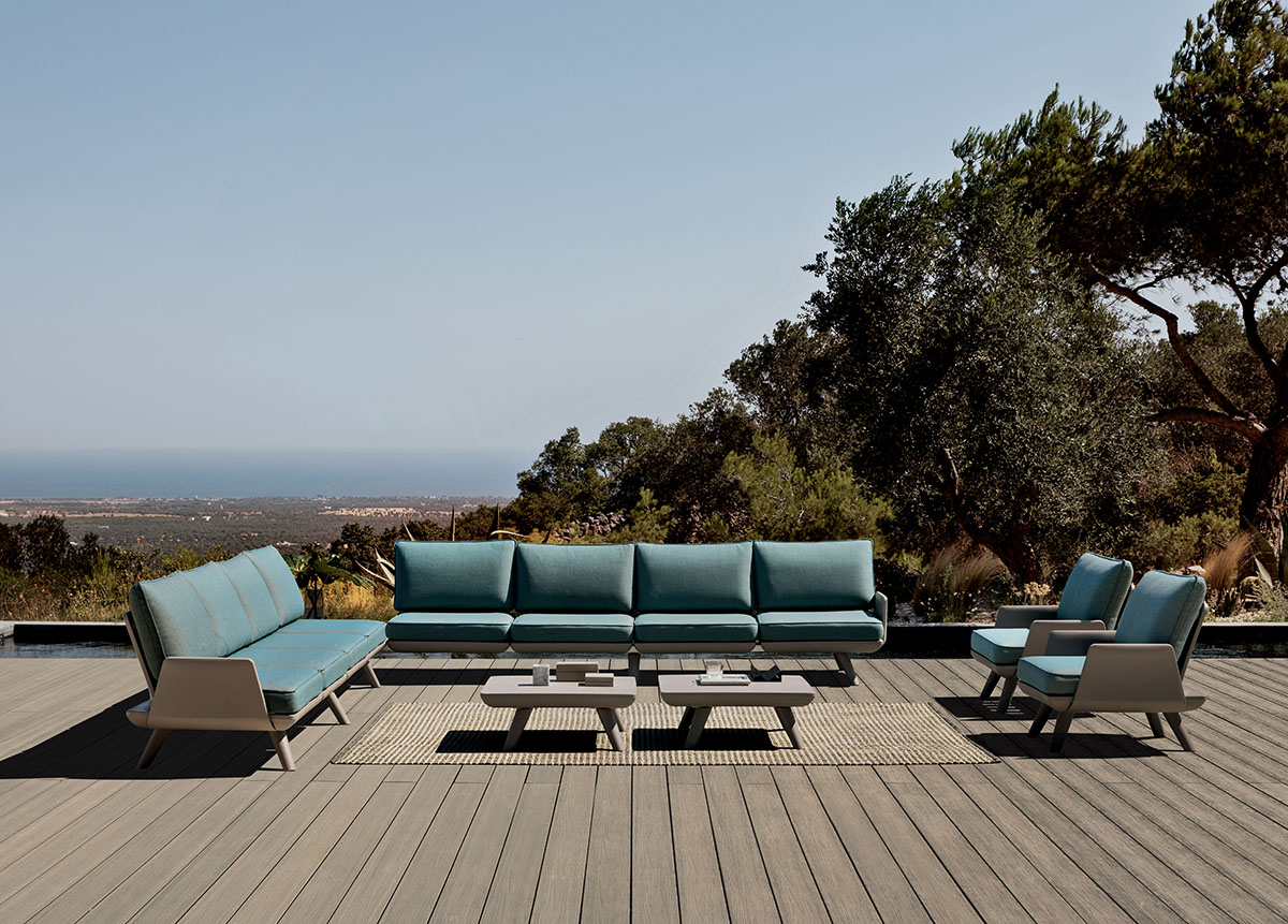 Die Sofas von My Your verbinden grosszügigen Komfort mit einer klar strukturierten Form. Modulare Konzepte ermöglichen vielfältige Konfigurationen für Terrassen und Gartenbereiche. Polster und Materialien sind für den Aussenraum entwickelt und behalten auch bei intensiver Nutzung ihre Qualität. Die Gestaltung bleibt ruhig und fügt sich harmonisch in die Umgebung ein.