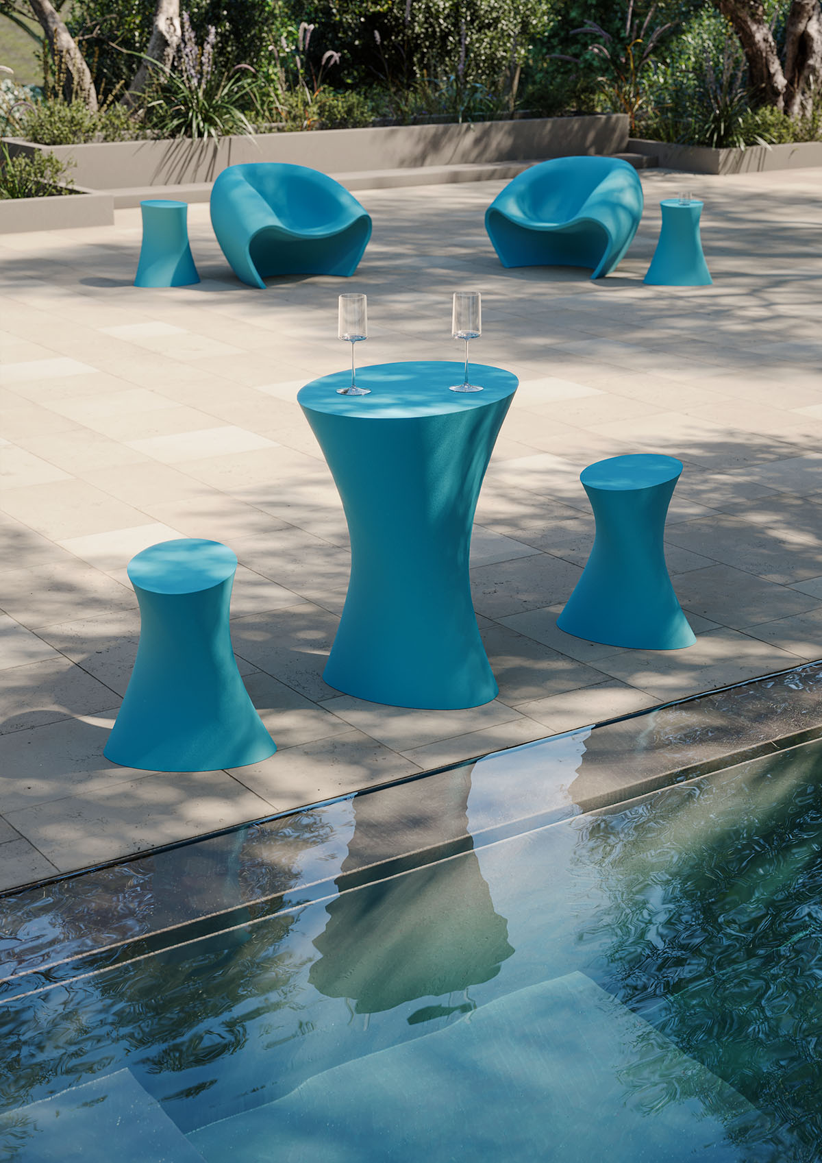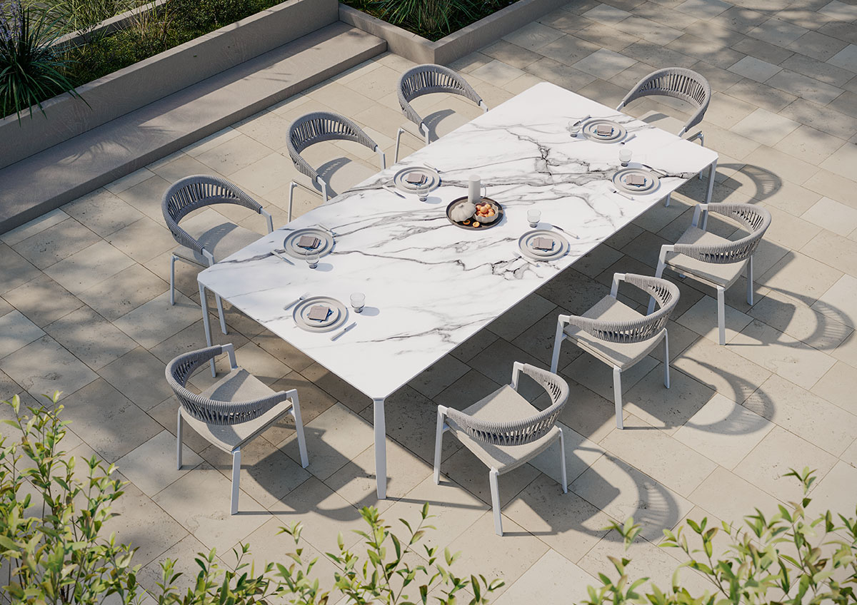 Die Tische von My Your sind als zentrale Elemente im Aussenraum gedacht. Ihre Gestaltung folgt klaren Geometrien, die Stabilität und visuelle Leichtigkeit miteinander verbinden. Wetterbeständige Materialien sorgen für eine zuverlässige Nutzung unter wechselnden Bedingungen. So entstehen reduzierte Flächen, die sich selbstverständlich in unterschiedliche Umgebungen einfügen.